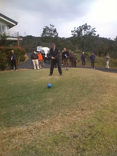 でもシャッター音もなんのその、全くの素人ゴルファーがまずまずの始球式をされ、一同一安心。県議は公務でコンペには参加されず、夕方からの成績発表会のみの参加でしたが、楽しい一日を過ごすことが出来ました。