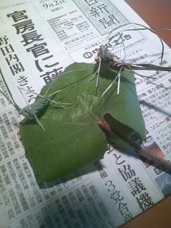 先日紹介し催促した我が自治会のバッタ作り名人がメールを見てか、写真の様なバッタを作ってきてくれました。