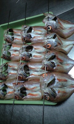 猫、ハエが寄り付かないように軒下に干し、しかも友達の機械屋さんにもらった工業用扇風機で風を当て、強制乾燥させましたが、この工業用扇風機の風は強烈で、初めて使った時は油断して強のボタンを押し、厨房内の紙類が吹っ飛ぶほどでした。