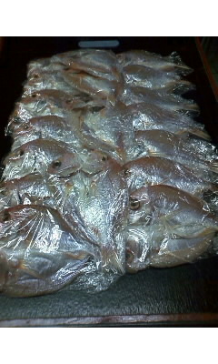 オードブル用の養殖鮎と釣って来た天然鮎の冷凍したものを開きにして一夜干しにしました。夜に行きつけの居酒屋さんに持ち込み焼いてもらいました。ゴルフコンペの仲間が来店していたので、自分の食べるのも提供し皆に食べてもらった所、大好評です。鮎の塩焼きより美味いと^^)