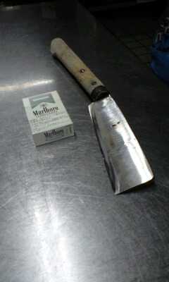 最近出刃包丁が鯛の頭に負けて刃こぼれ気味、でもこれがあれば大丈夫。10キロの鯛でも太刀打ちできます。 楽しみ~!